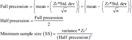 where Zc = Z value for 95% confidence interval,