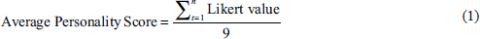 A 5-point Likert scale was used to measure all personality items. A score of personality was calculated as the mean score of individual responses for each item of the dark triad using Equation (1). Higher scores indicate a higher level of possessing that particular trait (Lopes & Yu, 2017).