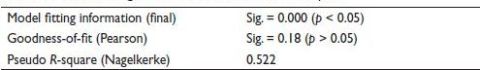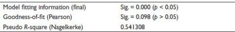 Table 8. Model Fitting, Goodness-of-Fit and Pseudo R-Square.