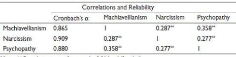 Table 4. Correlations, Reliability and Validity Among the Dark Triads.
