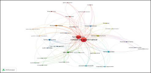 Like other business forms, corporate governance is a matter of concern for family firms as well. The objective of the work is to study the corporate governance practices of family-owned firms using bibliometric analysis of existing literature. With the help of VOSviewer & Biblioshiny Software, an attempt has been made to develop the visualization patterns based on academic publications growth, most influential authors, country, keyword occurrences, thematic map and co-authorship network. Based on 435 studies conducted during the selected period, the study found the maximum work has been done in the USA followed by Italy, Spain, China and UK, and Anderson and Reeb (2003) is the most cited work in this area. The main focus of prominent studies was on assessing the impact of family ownership on a firm’s performance, and there is unanimity that family firms’ CEOs devote more time and effort to preserve socio-economic wealth, have fewer forecasting errors and perform better. Though ‘corporate strategy’ and ‘governance approach’ are key concepts in family businesses yet it is a less explored areas. Thiss article provides an overview of how the literature on corporate governance and family firms has evolved and a synopsis of the most influential authors, most productive countries, co-word analysis and themes clustering. This study provides a thorough coverage of the existing literature on family governance mechanisms and is helpful for new researchers who want to understand this concept and also for those who are looking to explore new directions in the same field.