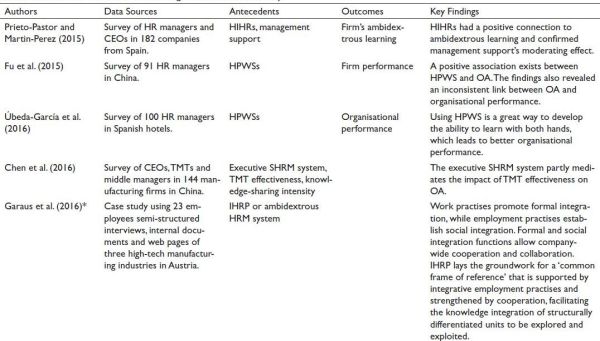 Further, they have found that high-performance work system (HPWS) adoption creates an environment that can facilitate ambidexterity, both direct and indirect, through HR flexibility (Úbeda-García et al., 2018b). Seminal contributions have been made by several researchers, for instance, Fu et al. (2015), Chang (Chang, 2016), Úbeda-García et al. (2018a) and Gürlek (2020).