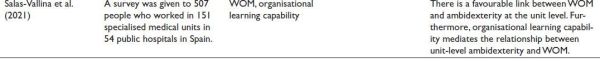 Salas-Vallina, A., Alegre, J., & Ferrer-Franco, A. (2021). Well-being-oriented management (WOM), organizational learning and ambidexterity in public healthcare: A two wave-study. International Public Management Journal, 25(6), 815–840.