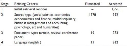 Note: This table presents the steps incorporated to select the documents for bibliometric analysis.