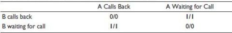 Coordination between actors now also applies to game theory, in which actors choose their actions according to their preferences given the actions (and preferences) of others. So-called equilibria are decisive here, in which players cannot improve their actions by choosing a different strategy.xxi Strategic combinations are considered Pareto-optimal if none of the players can improve without making another worse off.xxii In interaction situations, there can now be various coordination problems between the actors involved. Lewis (1969) describes this in the example of an interrupted call. Two actors A and B are having a telephone conversation and this is suddenly interrupted. Both actor A and B can now either try to call the other again or wait for the other to call again. If both call again at the same time, the call is not made (busy). If neither of them calls the other again, the call cannot be continued. The two have no opportunity to coordinate, which leads to the following preference matrix with two equilibria (marked bold).xxiii