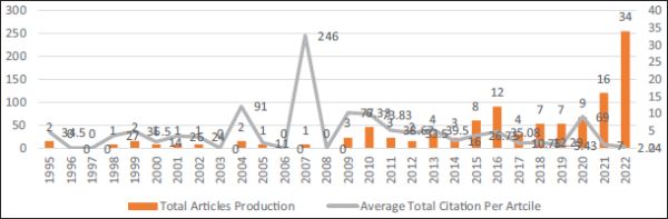 Figure 2. Production of Article Over the Time Horizon and Average Total Citation per Article.