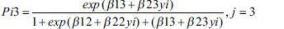 For instance, how likely is it that a farmer who receives a loan will opt for one of the three options? This decision is influenced by a variety of variables. The following is the likelihood that the ith farmer would select option j, just like in the LM: Pij=P[A person i choose option j]. Using these three options for j=1, 2, or 3.