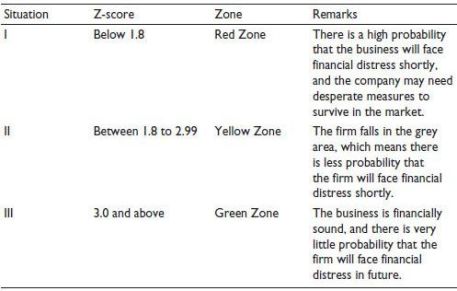 Based on the z-score obtained by a particular firm, Altman’s model helped to identify if a specific firm is heading towards bankruptcy. The guidelines for reading Altman’s z-score are provided in Table 3.